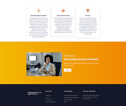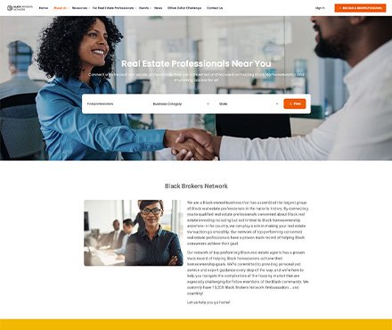The Black Brokers Network site was built to represent the largest collective of Black real estate professionals in U.S. history. As a Black-owned and operated organization, their mission is to create opportunities, build community, and support Black professionals across the real estate industry.